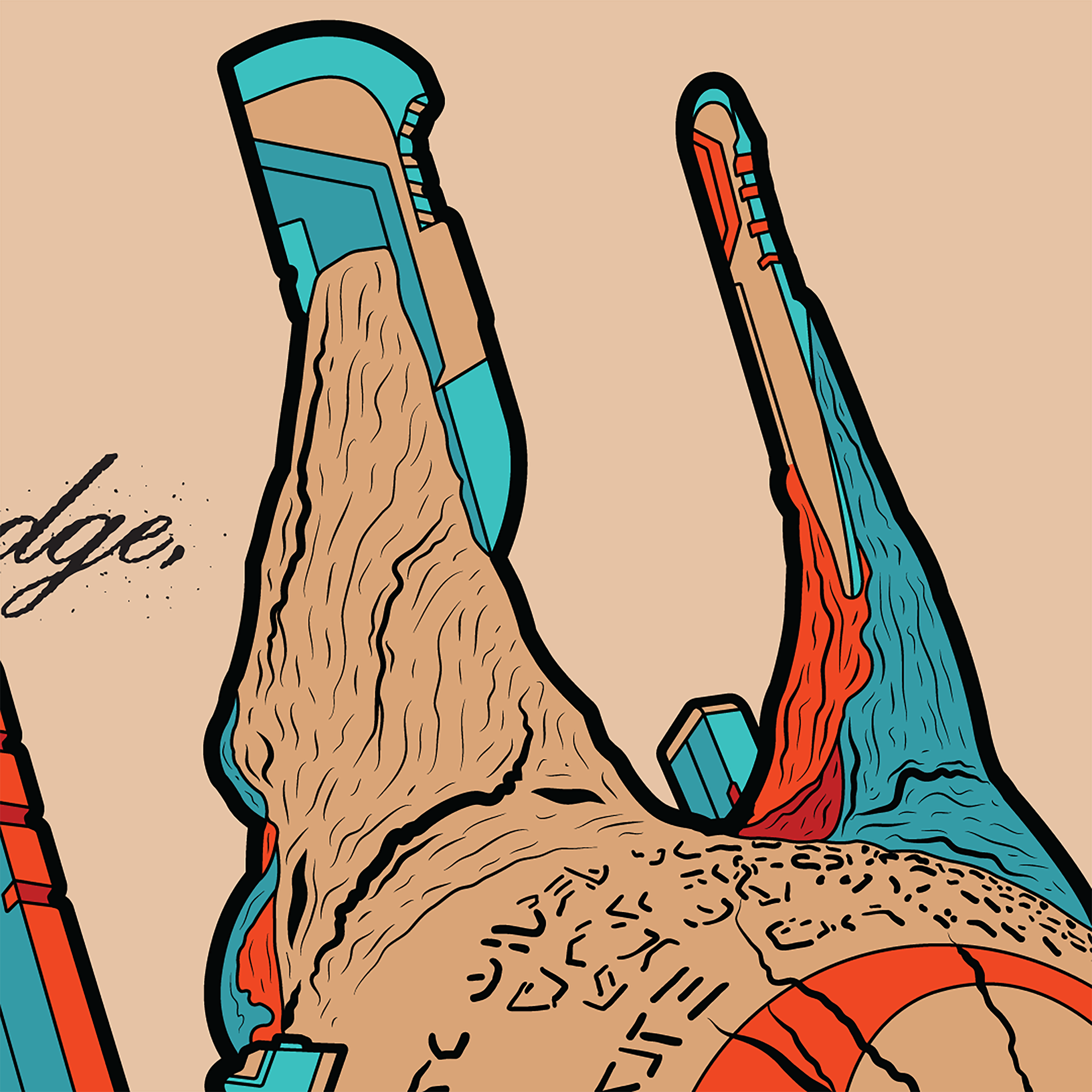 An illustration of the helmet worn by Enfys Nest, a character from "Solo: A Star Wars Story." The inscription on her helmet reads, "Until we reach the last edge, the last opening, the last star, and can go no higher."